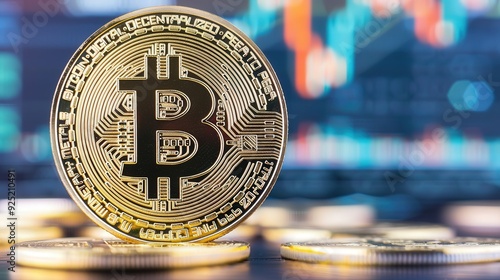 Abstract Bitcoin symbols intertwined with dynamic exchange algorithms, vibrant colors illustrating digital currency concepts, ample space for promotional messaging.