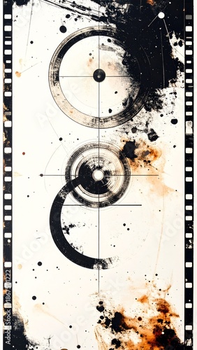 Abstract Black and White Composition with Circular Motifs on Textured Background