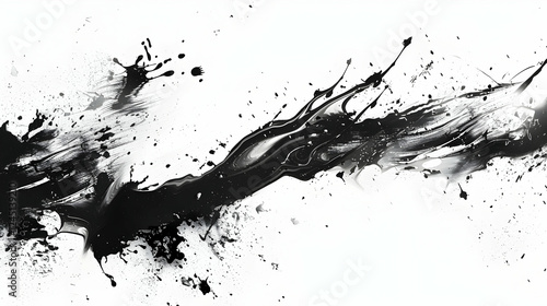 Abstract black and white ink splash art creating dynamic movement on a white background
