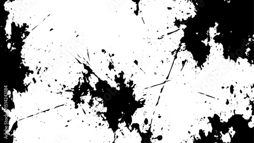 Abstract Black Ink Splatter Texture on White Background with Drips and Splatters