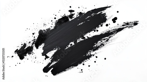 Abstract black paint strokes and splatters on white background