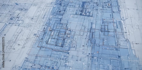 Abstract blue architectural blueprints, technical drawing detail, modern, design, background