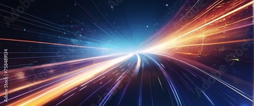 Abstract blue background with glowing rays suggesting energy and movement in space