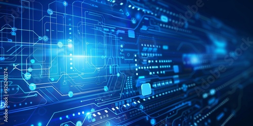 Abstract Blue Digital Background Featuring Futuristic Circuit Board Elements