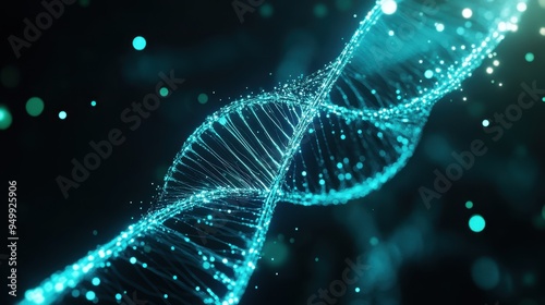 Abstract Blue DNA Double Helix with Bokeh Background - Science, Genetics, and Technology Concept.