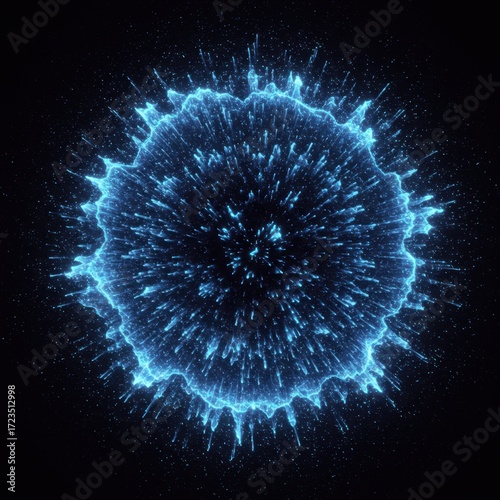 abstract, explosion, particle, glowing, blue, energy, datum, technology, science, burst, light rays, futuristic, dynamic