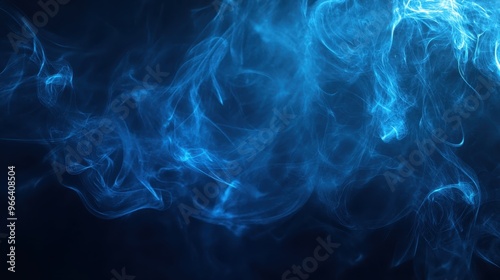 Abstract blue smoke or mist on a dark background, creating a mystical and mysterious atmosphere with swirling wisps and flowing forms.