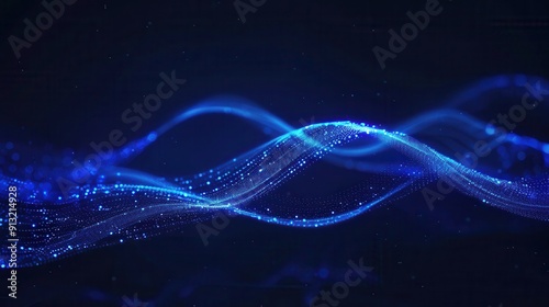 Abstract blue wave background with glowing particles, perfect for technology or digital themes.