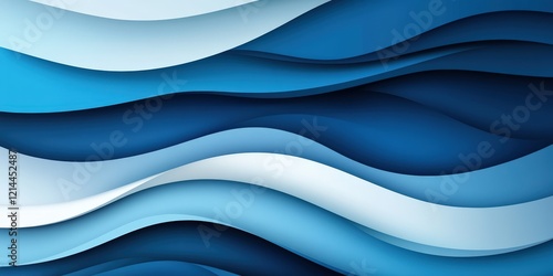 Abstract Blue Wave Layers: Paper Cut Style Background