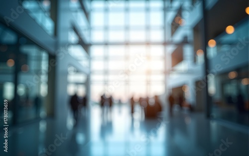 Abstract blurred background of modern glass building interior with light and shadow effects for business design concept. High quality