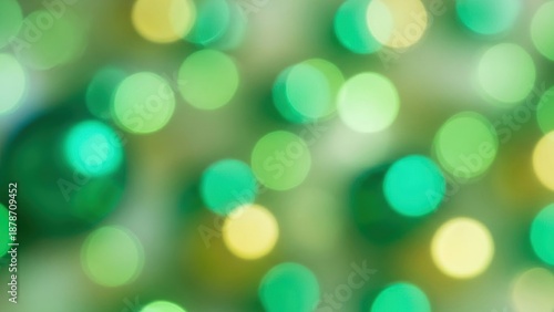 Abstract bokeh light background with green and yellow circle blur for festive St Patrick Day celebration and party invitation card.