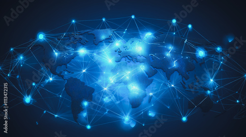 abstract business connection of line from nail node to node on world map background Innovation network points Earth's surface