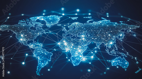 abstract business connection of line from nail node to node on world map background Innovation network points Earth's surface