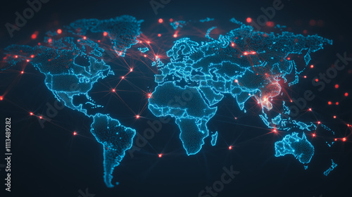 abstract business connection of line from nail node to node on world map background Innovation network points Earth's surface