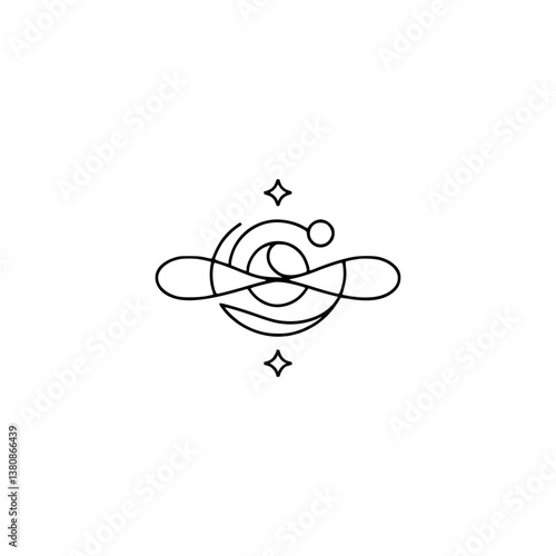 vector, abstract, logotype, line art, space, celestial, moon, star, planet, minimal, modern, design, illustration, icon, graphic, symbol, black-and-white, elegant, creative, branding, cosmic, astronomy, universe, outline, simple, geometric