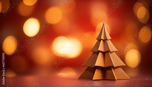 Abstract Christmas Tree Concept with Bokeh Lights and Cardboard Decorations
