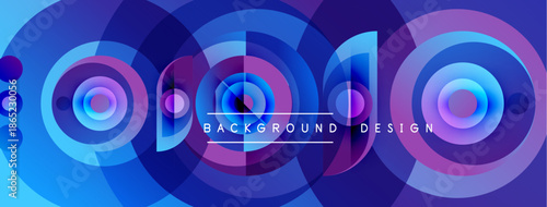 Abstract circles overlap, creating vibrant blue purple gradients. Text reads background design centered within composition. Modern, dynamic visual.