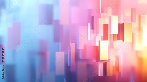 Abstract Colorful Blocks Floating in Digital Space, Background Blur, Technology Presentation