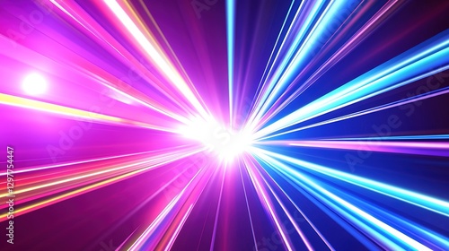 Abstract, colorful light rays background with neon, glowing lines, laser effect, and fast-paced motion blur for a futuristic design vector illustration. Includes copy space for high-quality,