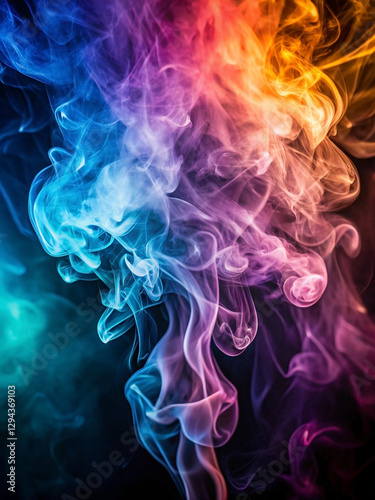 Abstract colorful smoke swirls on black background. (4)