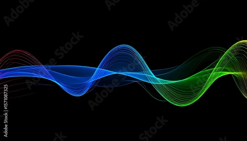 Abstract, colorful, wavy lines on black background