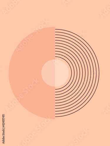 Abstract contemporary aesthetic poster design with geometric shapes and lines like sun and rainbow. Mid-century modern wall decor. Trendy minimalist print. Vector illustration.