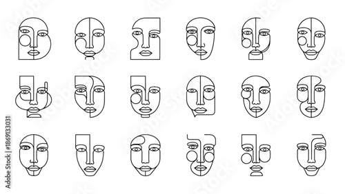 Abstract Continuous Line Faces Collection Modern Minimalist Portrait Art