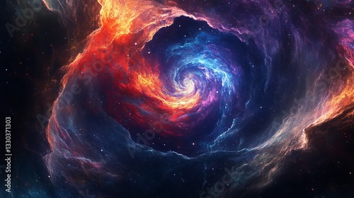 Abstract Cosmic Nebula Swirl Red Orange Blue Purple Space Background Digital Art Fantasy Galaxy Illustration Vibrant Colors Energetic Celestial Design