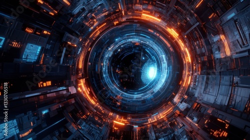abstract, technology, datum, visualisation, futuristic, motion, light, digital, background, design, circuit, pattern, energy, colours, bright, blue, orange, science, space, digital artwork, glowing, geometric, line, structure, innovative, network, creativity, depth, round, circular, three-dimensional, modern, dynamic, tech, visual, illustration, artistic, concept, perspective, vivid colors, high technology, exploration, universe, high-coloured, swirling