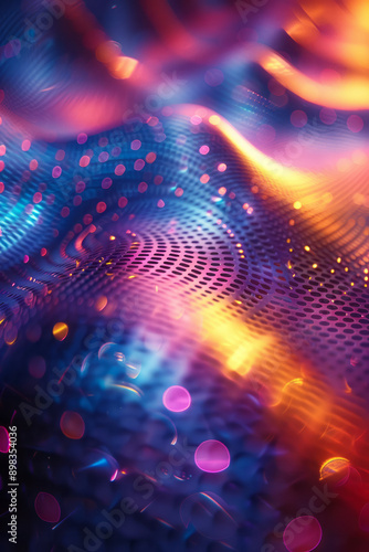 Abstract design featuring a perforated pattern with a radiant gradient of teal and violet,