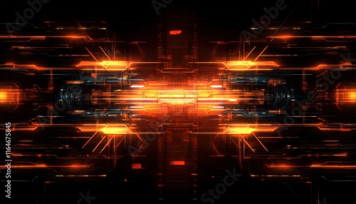 Abstract Digital Circuit Board Glowing Orange and Red Technology Background Futuristic Network