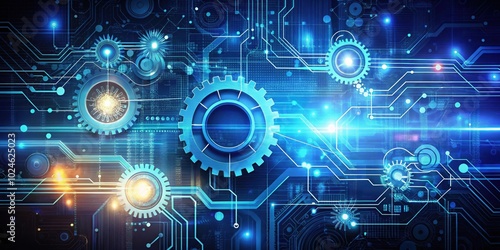 digital, circuit, circuitry, futuristic, cog, gear, line, glowing, technology, abstract, background, blue, network, connection, datum, tech, engineering, digital artwork, innovation, automation, system, interface