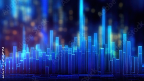 abstract, city landscape, digital, futuristic, illuminated, bar, glowing, blue, night, light, graphic, design, technology, modern, background, skyline, architecture, pattern, geometric, urban, style, three-dimensional, art, concept, visual, datum, structure, network, connection, growth, progress, dynamic, dark, grid, space