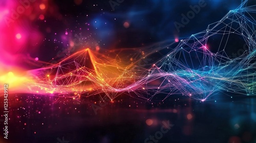 Abstract Digital Landscape with Interconnected Lines in Vibrant Colors and Soft Glow Ideal for Modern Backgrounds and Creative Projects