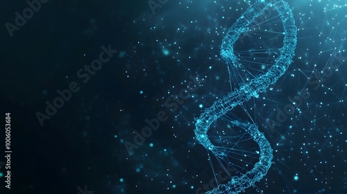 helix, deoxyribonucleic acid, double, abstract, digital, representation, molecular, genetic, code, science, biology, medicals, research, structure, chromosome, gene, genome, strand, material, footed, pair, blueprint, life, evolution, genetic, laboratory, microscope, innovation, biotechnology, discovery, health care, future, technology, art, graphic, design, pattern, network, connection, dot, line, blue, dark, background, glow, light, futuristic