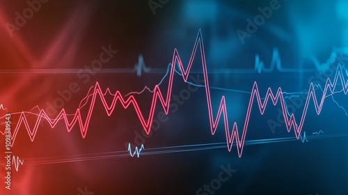 Abstract digital representation of fluctuating data trends, featuring vibrant red and blue lines against a dark background.