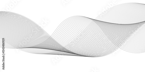 Abstract digital stylized black and grey curved wavy line art element for design white Striped line texture background. Vector illustration.