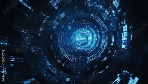 digital, tunnel, cyberspace, abstract, technology, future, datum, code, network, science, innovation, virtual, reality, space, glowing, light, blue, dark, circle, line, pattern, design, graphic, art, modern, futuristic, three-dimensional, rendering, computer, generated, imagination, creative, tech, electronic, electric, system, structure, digital artwork, science fiction, cosmos, energy