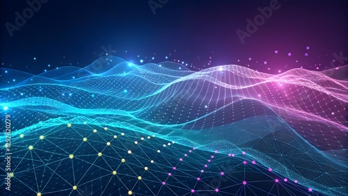 Abstract Digital Wave Patterns with Vibrant Light and Network Nodes