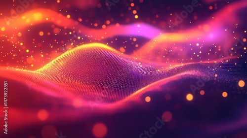 abstract, digital, wave, particle, glowing, vibrant, colours, motion, energy, design, texture, futuristic, technology, dot, light, blur, pattern, gradient, red, orange, pink, purple, background, dynamic, visualisation, rendering, three-dimensional, computer, illustration, modern, colourful, geometric, smooth, fluid, art, graphic, shape, pixel, background, creative