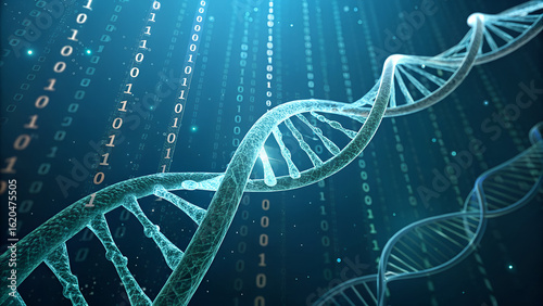 Abstract dna helix with binary code for science and technology concept