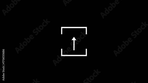 Abstract Download Icon White Arrow with Box on Black Background.