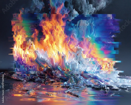 fire, explosion, abstract, vibrant, colours, fractured, digital, graphic, art, texture, smoke, ice, liquid, melting, bright, surreal, dynamic, chaos, energy, colourful, modern