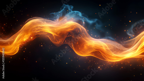 abstract, wave, fire, energy, glowing, particle, dynamic, motion, futuristic, technology, background, design, orange, yellow, dark, black, light, sparkle, texture, style, modern, digital artwork, presentation background, advertising, poster, flier, element, graphic, visual, design element, high technology, cosmic, smoke, blue, spark, flames, heat, digital, trendy, contemporary