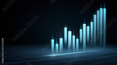 Abstract financial chart with glowing bar graphs indicating growth and progress.