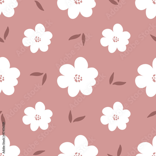 Abstract floral seamless pattern with cute flowers and leaves. Simple ditsy floral seamless pattern.