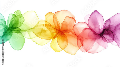 abstract, flower, colourful, gradient, vibrant, green, yellow, orange, red, purple, dynamic, soft, flowing, composition, joy, creativity, artistic, design, background, texture, illustration, beauty, nature, floral, modern, bright, cheerful, semitransparent, wave, pattern, visual, art, decoration, elegance, light, airy, harmony, fluid, contemporary, aesthetic, creative