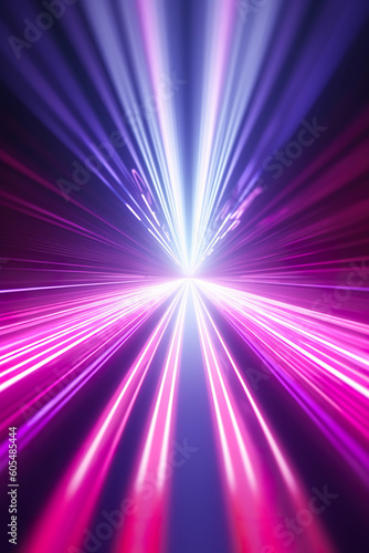 Abstract futuristic background high speed straight white pink lines and bokeh glowing neon moving. High speed futuristic travel concept. Fantastic wallpaper, Ai Generative