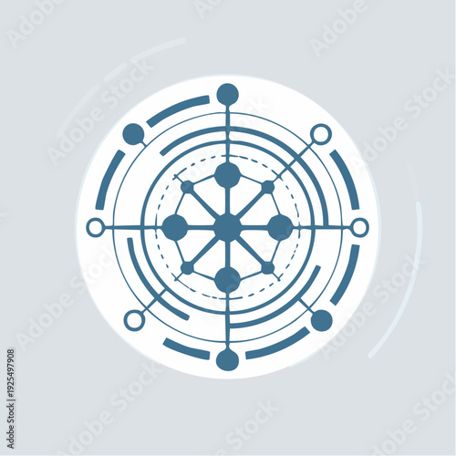 Abstract geometric circular pattern with connections and nodes on a light background