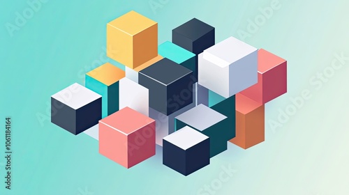 abstract, art, background, blue, bright, colours, colourful, composition, cube, design, geometric, graphic, green, illustration, isometric, light, modern, pattern, pink, red, shape, simple, square, style, texture, turquoise, white, yellow